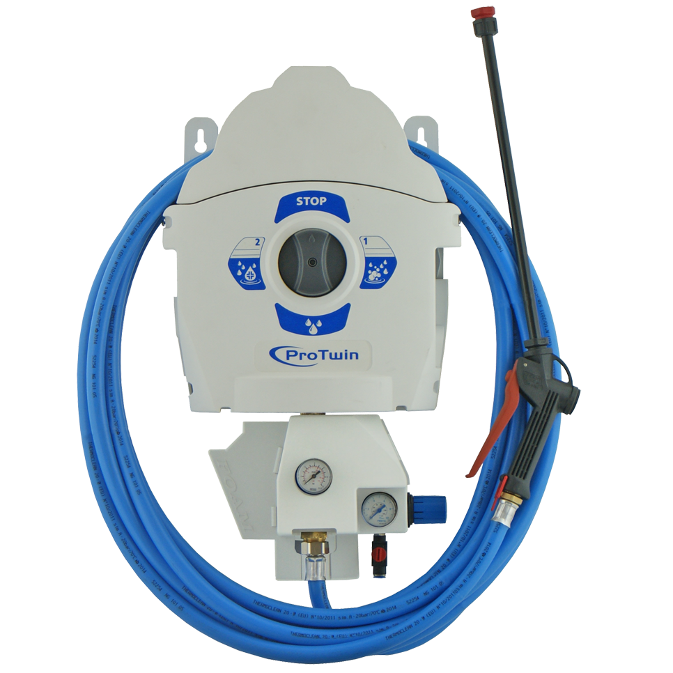 Sistema a due prodotti con diluizioni regolabili tramite ugelli colorati