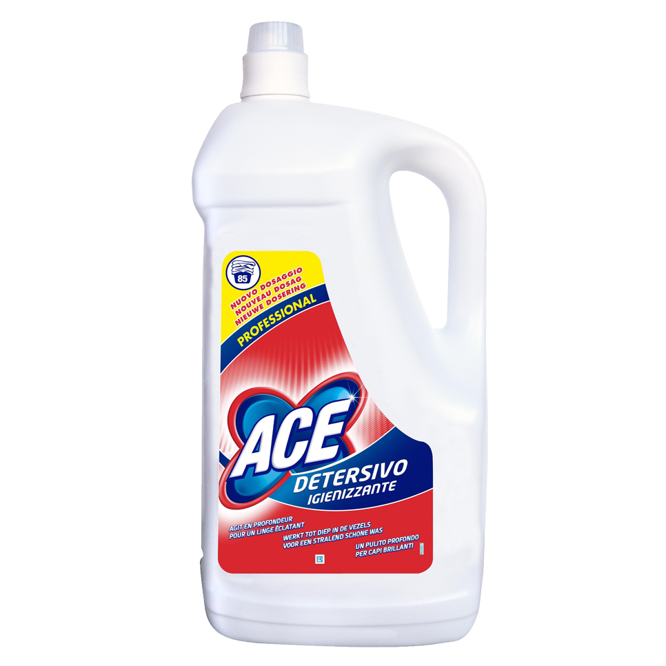 ACE DETERSIVO LIQUIDO 85 SCOOP contiene una combinazione unica di ingredienti altamente performanti che garantiscono un pulito impeccabile. Contiene enzimi ad alta tecnologia utili alla rimozione di qualsiasi tipo di sporco. Consente fino a 85 lavaggi. Può essere utilizzato su tutti i tipi di tessuti bianchi e colorati, ad eccezione di lana e seta, alle temperature di 30 - 95°C (bucato bianco) e 30 - 60°C (tessuti colorati).