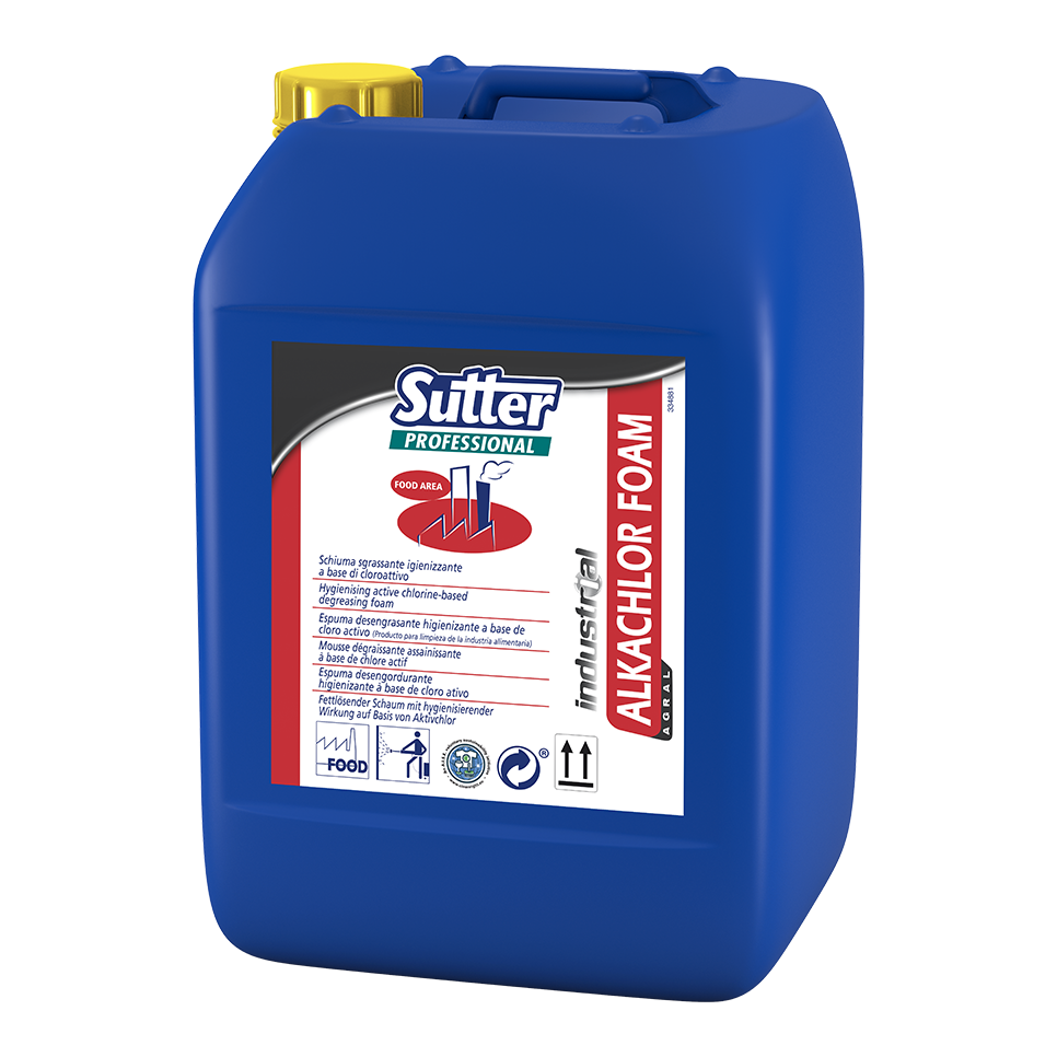 Schiuma sgrassante e igienizzante ad alto potere aggrappante per un uso in ambiente alimentare (HACCP). Adatta alla pulizia di pareti, attrezzature, banchi di lavoro e pavimenti in industrie agroalimentari. Ottimo effetto sbiancante per macchie organiche e di sangue.
