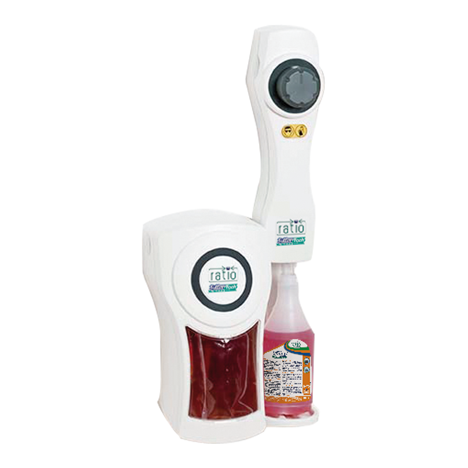 Sistema di diluizione Venturi ad 1 prodotto per soluzione detergente per flacone, a bassa portata 4 lt/min, attivazione a bottone. Grazie alla connessione alla rete idrica, il prodotto è aspirato dalle pouch "captive" del sistema RATIO, in giusta dose (da 0,8% a 33%). E' possibile regolare la diluizione del prodotto attraverso il posizionamento della ghiera regolatrice sulle apposite lettere (dalla A alla J).