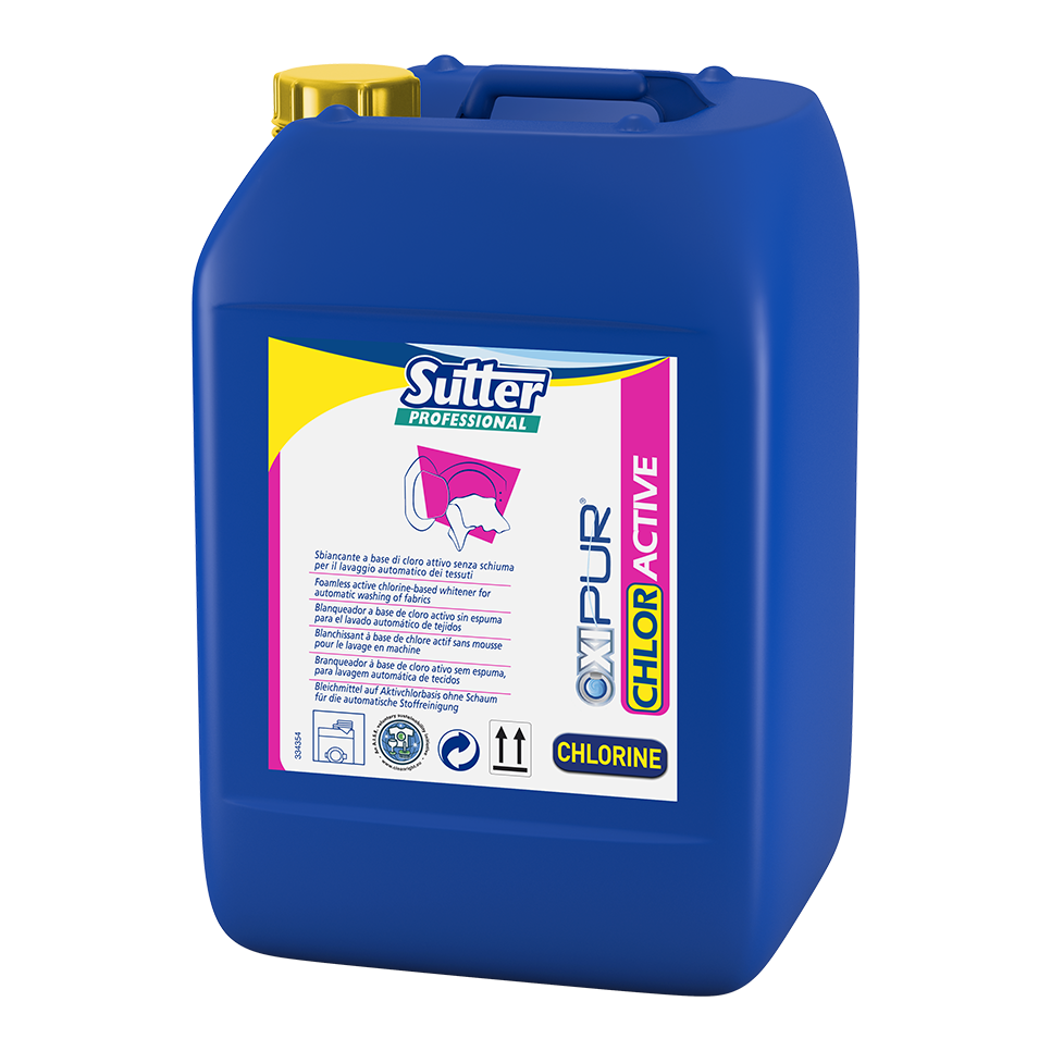 Sbiancante a base di cloro attivo per il lavaggio automatico dei tessuti bianchi o clororesistenti. Da utilizzare con temperatura sotto i 60°C. Attivo su qualsiasi durezza dell'acqua. Elimina rapidamente macchie di caffè, pomodoro, rossetto e vino.